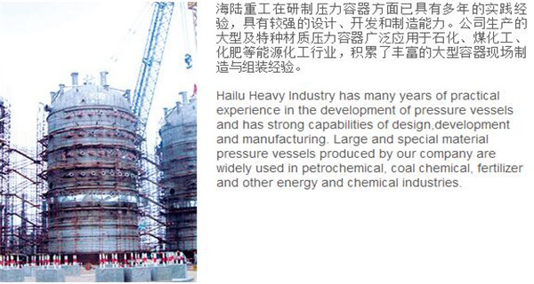 蘇州海陸重工股份有限公司位于江蘇省張家港市開發(fā)區(qū),是國內(nèi)一流的節(jié)能環(huán)保設備的專業(yè)設計制造企業(yè),目前并已初步形成鍋爐產(chǎn)品、大型壓力容器、核電設備、低溫產(chǎn)品、環(huán)保工程共同發(fā)展的業(yè)務格局。公司創(chuàng)建于1956年,注冊資本51640萬元,占地面積近50萬平米。公司下設八個控股子公司,一個余熱鍋爐研究所,在瑞士、北京、武漢、南京、上海、杭州、廣州等地設立分支機構,擁有雄厚的研發(fā)實力。公司秉承“科技領航、業(yè)界先鋒”的發(fā)展理念,注重研究廢熱、余熱利用和環(huán)境保護相結合的新技術研發(fā),自主設計能力居同行前列;公司承擔過國家863計劃,江蘇省科技成果轉(zhuǎn)化專項資金,榮獲國家科技進步二等獎,產(chǎn)品擁有核心自主知識產(chǎn)權并取得專利50多項;公司推行國際先進的管理體系標準和認證,擁有 A級鍋爐制造許可證,A1、A2、A3級壓力容器設計和制造許可證,取得了民用核承壓設備制造資格許可證、美國機械工程師學會(ASME)“S”、“U”鋼印,通過了ISO9001質(zhì)量體系認證、健康體系認證和14000環(huán)境體系認證;公司設備先進,裝備精良,專業(yè)嚴謹?shù)闹圃炖砟畲蛟斐銎焚|(zhì)非凡、質(zhì)量一流的“海陸”品牌聲譽。